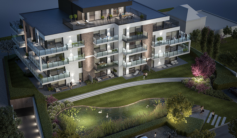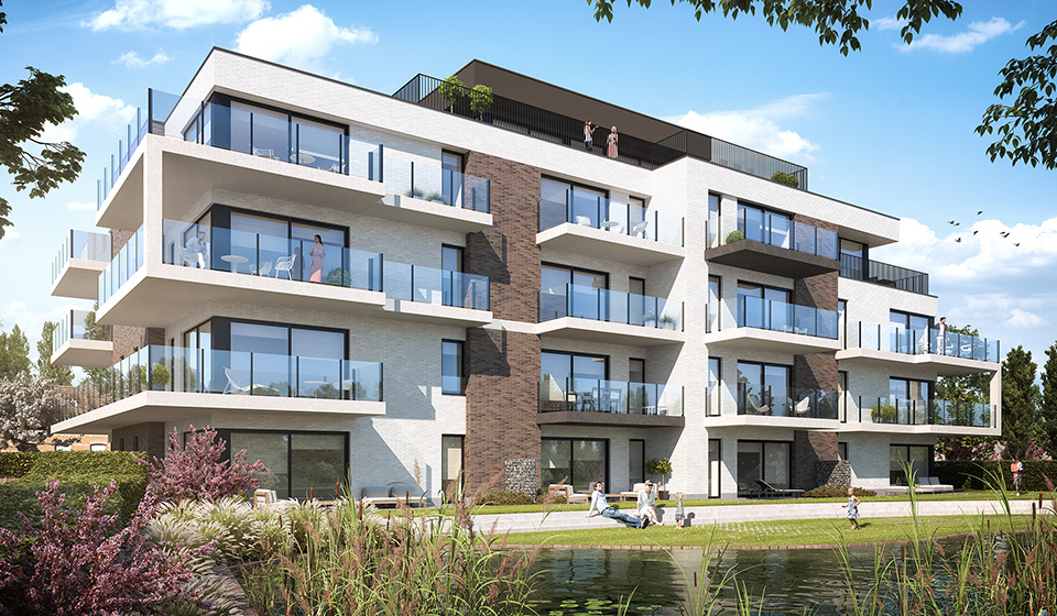 Aan de rand van het natuurreservaat, vlakbij het water van een bosrijke Leie-arm en daarbij uitkijkend op een prachtige lak in een park, herrijst een uniek project van standingvolle verblijven.